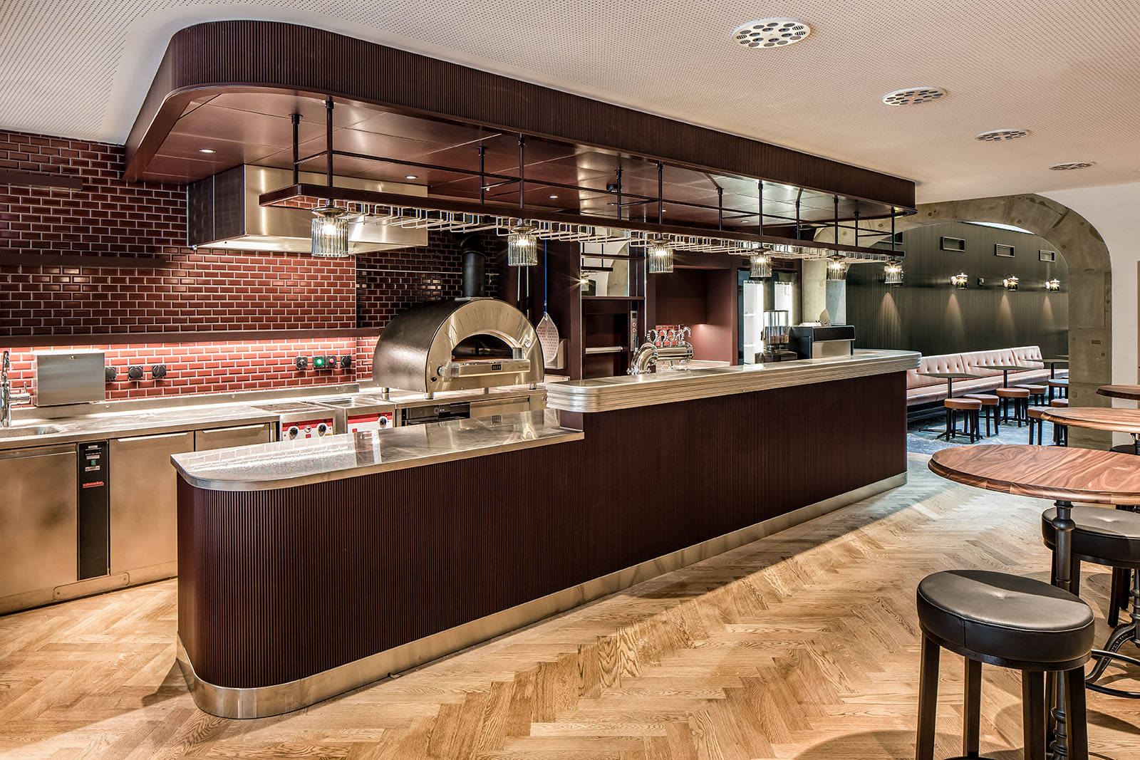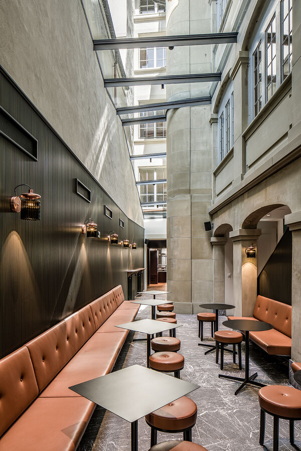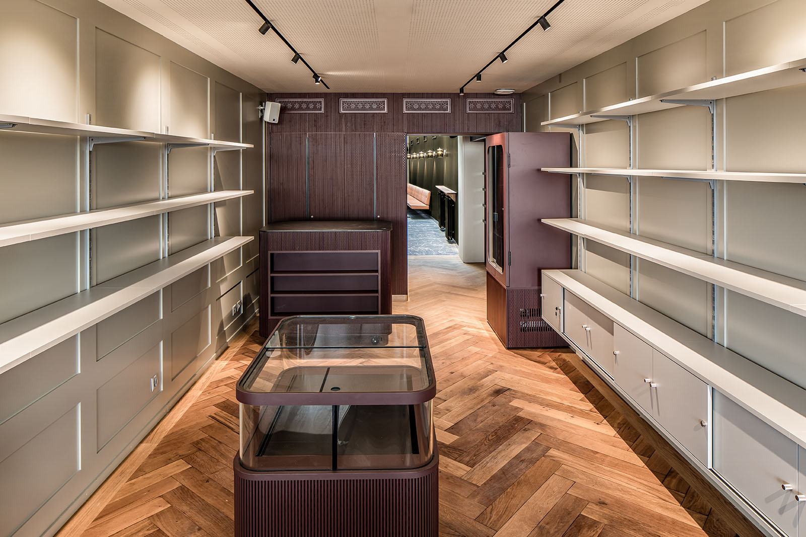 Konzeptionierung und Gestaltung des Innenausbaus Restaurant und Laden Frohsinn Bern, im Rahmen der Gesamtsanierung der beiden Altstadtliegenschaften Kramgasse 59 und Münstergasse 54.