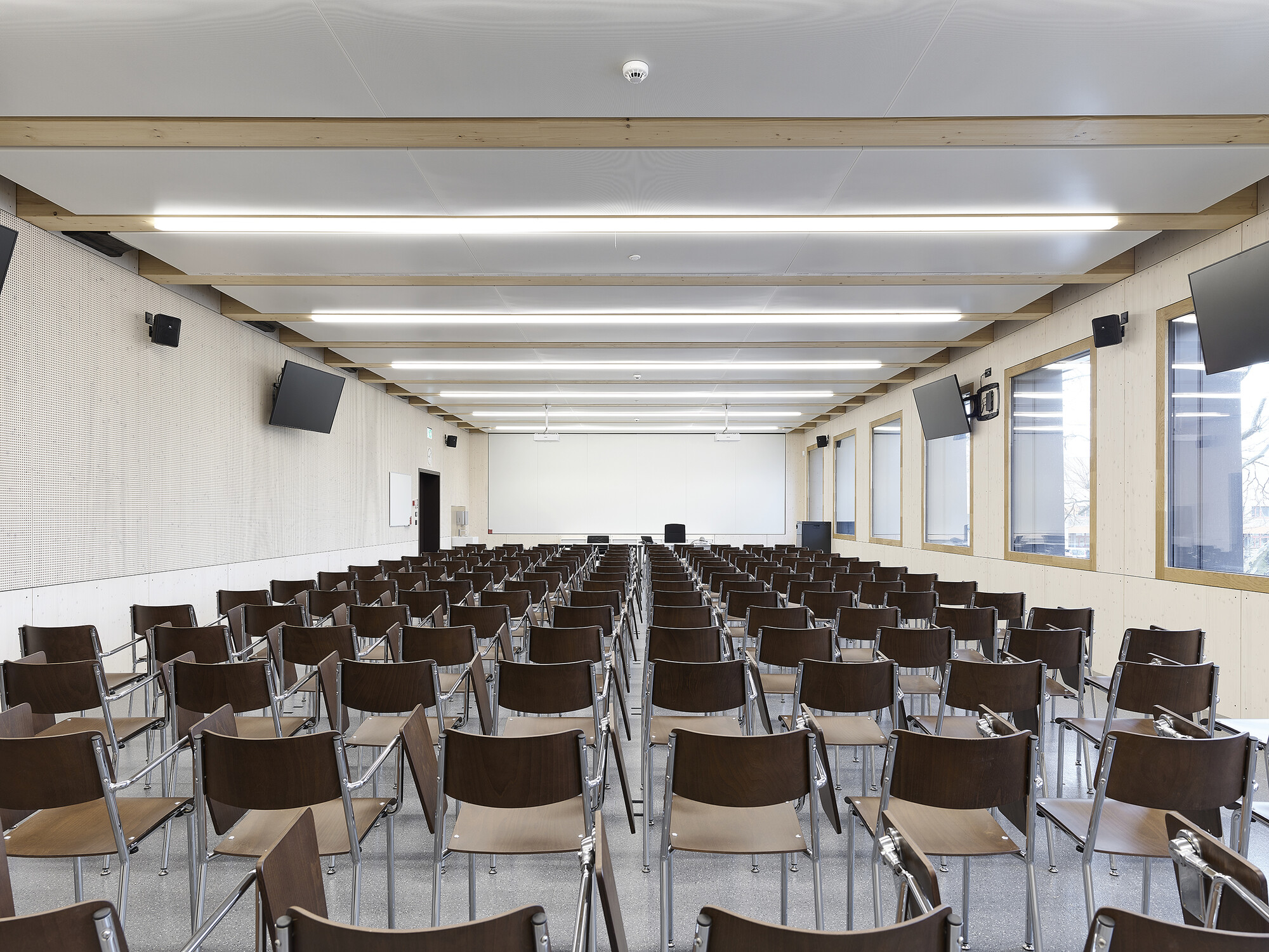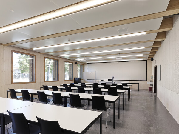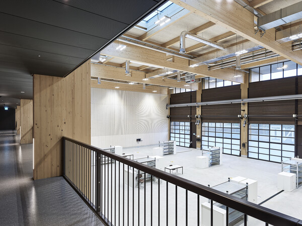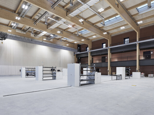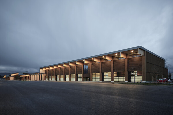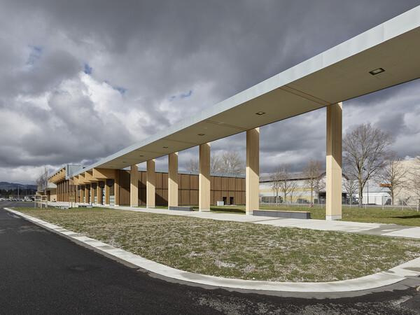 Über der Bodenplatte ist das ganze Bauwerk in kostengünstiger Holz- (System-) Bauweise erstellt. Das Gebäude ist Minergie zertifiziert und die Dächer sind vollflächig mit einer PV-Anlage eingedeckt.