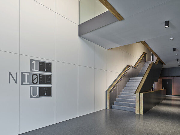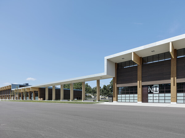 Zwischen Allmendstrasse und Grosser Allmend Thun steht neu ein Ausbildungszentrum für die Ausbildung zur Diagnose und Reparatur von Telematik und Informatik in Fahrzeugen und Systemen. Das Raumprogramm ist verteilt in drei Baukörpern, welche alle aufgeteilt sind in Ausbildungs- und Theorieräume auf zwei Geschossen gegen Norden zur Allmendstrasse hin und in unterschiedlich hohe Hallen gegen Süden zur Grossen Allmend hin. Diese Aufteilung bietet einen hohen Grad an Flexibilität für die Nutzung und mit dieser Volumenverteilung und dem durchlaufenden Vordach kann das Ensemble auf die unterschiedlichen Rahmenbedingungen der beiden Seiten ideal reagieren. Zudem bieten sich Blickfenster von der Allmendstrasse zur Grossen Allmend und auf die imposante Bergkette.